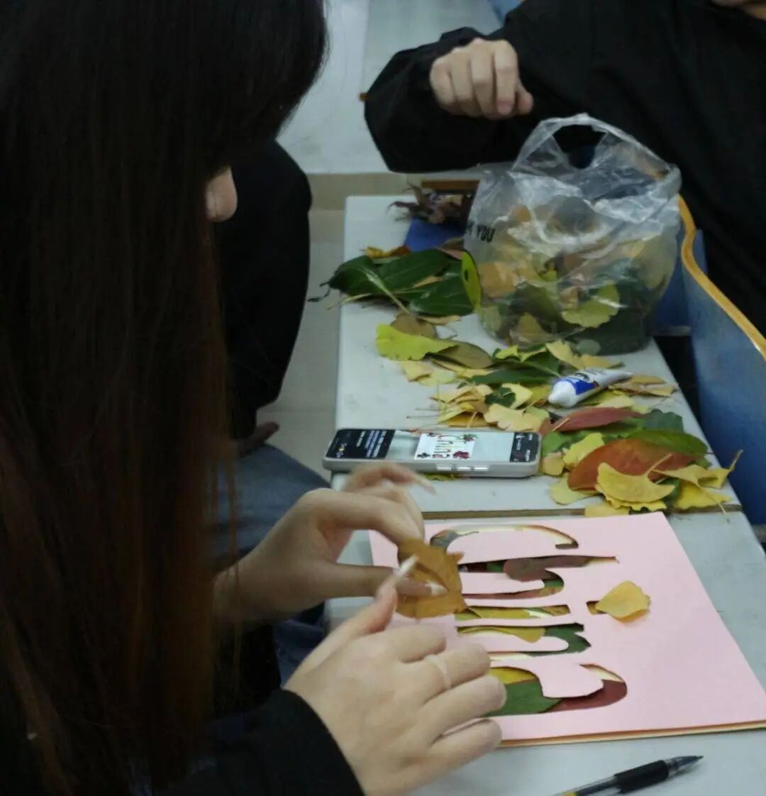 活动融合红色教育与劳动实践,组织学员采集秋叶进行剪贴画创作。各小组在组长带领下专心创作,大家手持剪刀精心修剪,用胶水将片片秋叶细心粘贴在卡纸上。原本零散的落叶,在团队的巧思与协作下,逐渐拼合成一幅幅富有爱国情怀的艺术作品,学员在动手实践中感悟革命精神。
