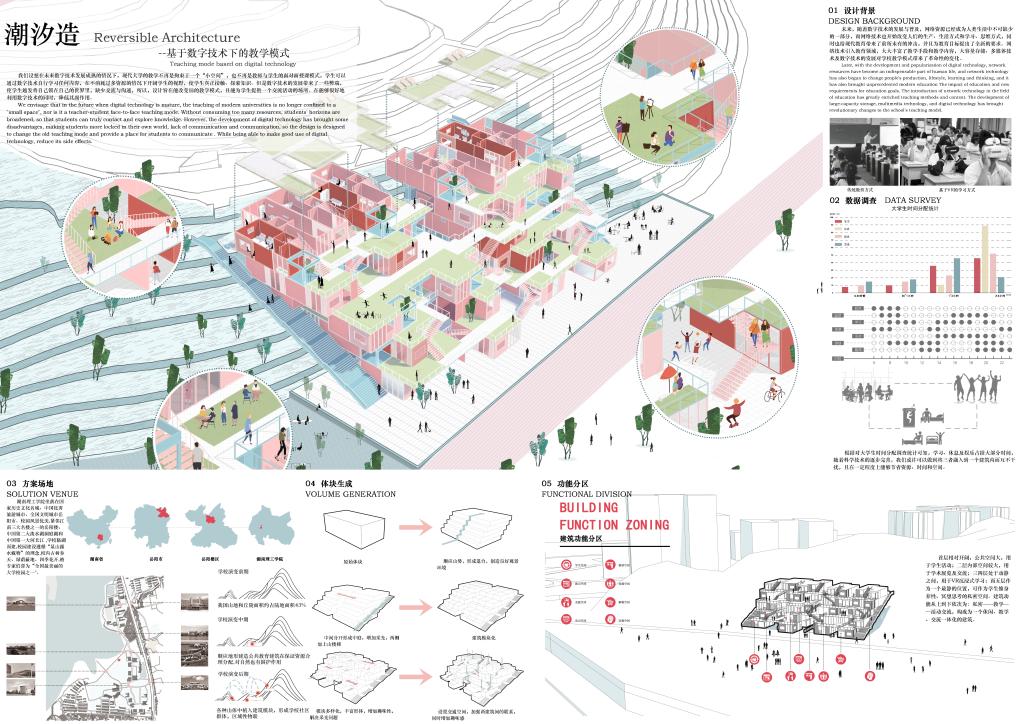 本次竞赛由湖南省教育厅主办,中南大学承办,以“后浪时代的大学空间”为题,旨在考察同学们以校园空间的建设者与参与者的身份,如何批判性思考大公司园空间需求的本质,技术与人的关系;又如何以设计思维和技术手段去解决现实社会与生态问题,并面向未来。