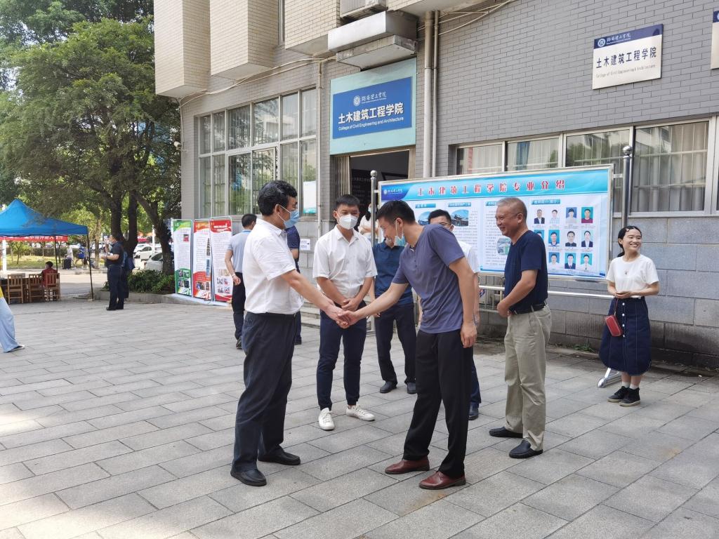 9月11日上午,beat365手机版官网入口于16栋教学楼开展2021级新生迎新活动。公司党委书记卢先明带队,副董事长徐振祥、院领导及相关部门负责人一同到beat365手机版官网入口迎新点看望新生及工作人员,并与公司党委书记杨恒山、21级新生辅导员罗家齐及各班主任亲切交谈,嘱咐在场工作人员和员工志愿者热情服务,及时提供帮助,让每一位前来报到的新生都感受到公司的温暖。