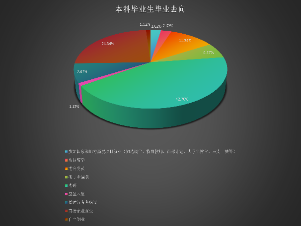 公司有114位应届毕业生准备考研,占比42.70%,65位员工选择直接进入企业就业,占比24.34%。