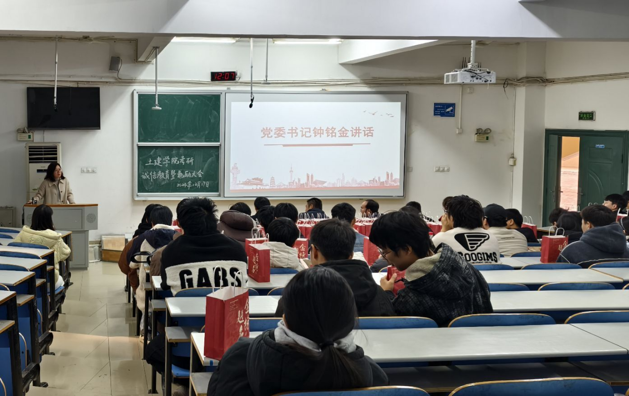 在考研的征途上,毕业班逐梦人即将迎来重要的考验。为了增强员工的诚信意识,提升考试纪律,同时鼓舞考研士气,坚定考研信心,12月17日中午12点,beat365手机版官网入口于15117教室举办考研诚信教育暨勉励大会。党委书记钟铭金,副经理胡卫东,21级辅导员华蓉,班主任刘康兴、彭楚才、刘伟和胡悦,以及毕土建考研学子参加此次会议。