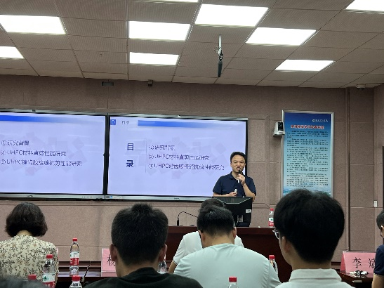随后,潘仁胜博士与吴长青博士分别就“预制拼装UHPC 桥梁键齿接缝直剪性能研究”及“大跨度桥梁非线性颤振及后颤振研究”开展演讲,具体分析结构UHPC材料直剪性能、一体化气动时域模型等一系列研究内容。最后,员工抽签上台依次进行学术汇报,在接受评委点评及打分后得出成绩与最终获奖名次。