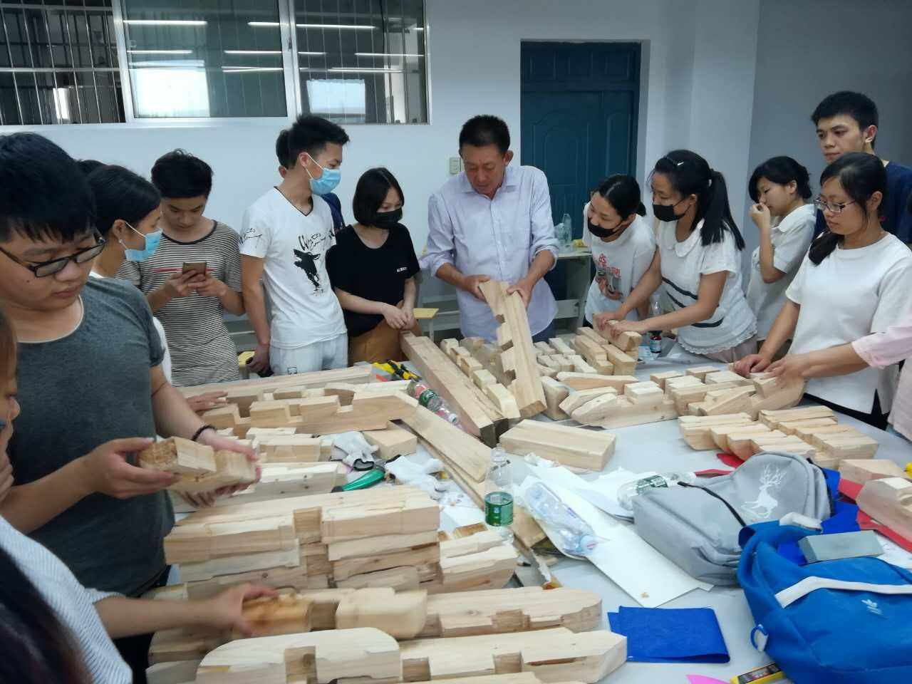 本次泥木工实习为期2周,实习内容分为木工和泥工工艺实习两大部分,分别在beat365手机版官网入口模型室和古建保护工地进行,主要包括安全教育、木工工具认识与安全使用示范、清式五踩斗拱制作安装、古建现场木作工艺认识、清水墙清理操作、墙面修补工艺操作等。专业教师向南和来自上海建为历保科技股份有限公司木作师傅孔维伏担任现场指导。孔师傅从事古建筑工作三十多年,在他的带领下,同学们收获良多。对于此次实习,孔师傅说:“实习中的一切,都是为了以后能更好的实践操作。”