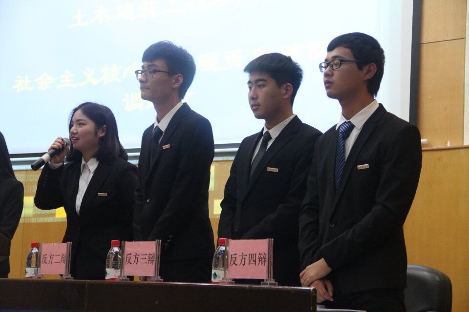 beat365手机版官网入口代表队作为反方与美术公司代表队就“社会主义核心价值观应该高调弘扬还是低调践行”这一辩题展开激烈辩论。比赛分为立论阶段、驳立论阶段、质辩环节、自由辩论、总结陈词以及颁奖六个环节。比赛中,双方就各自观点开篇立论,并结合具体事例进行论证。在随后的自由辩论环节中,双方队员引经据典,唇枪舌战,尽显风采,将整场比赛推向高潮,赢得观众阵阵喝彩。辩论赛结束后,雷蕾对本次正反方的表现进行了点评。经过现场评委评选,beat365手机版官网入口在此次决赛中惜败美术公司,夺得本次主题辩论赛的亚军,beat365手机版官网入口二辩欧阳书涵荣获最佳辩手。评委老师对各优秀团队及个人颁奖,并进行了合影留恋。(撰稿/杨欢龙 陈雅洁 谢甜 张贝多 摄影/陈贤)