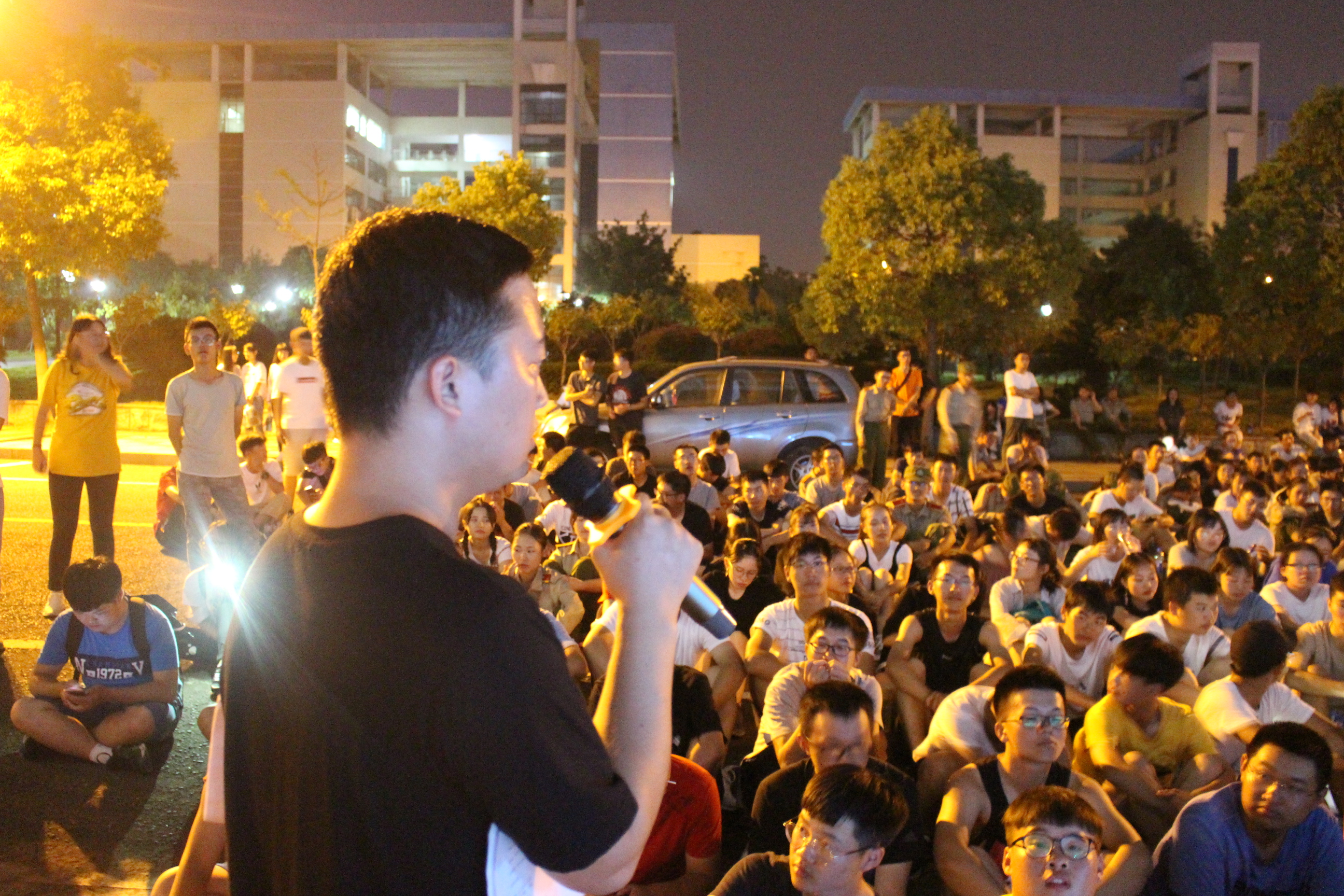 9月18日晚,beat365手机版官网入口于5栋教学楼前坪举办2018级新生军训慰问演出。2018级辅导员周凯红,全体新生及各班助班参加。