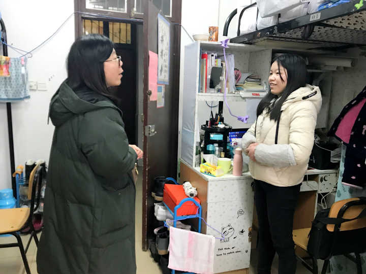 钟铭金询问员工期末考试情况,并提醒部分补考员工认真备考。她向员工强调注意保暖,建议员工合理作息,营造寝室良好生活环境,在保障自身身体健康的同时迎接新学期的到来。钟铭金表示,员工应遵守公司规章制度,做到不骑电动摩托车,不使用违章电器。各辅导员检查了寝室内务整理情况,并与班级员工交流新学期学习目标,在强调合理规划时间的同时提醒员工养成良好的学习生活习惯。(撰稿/童颖)