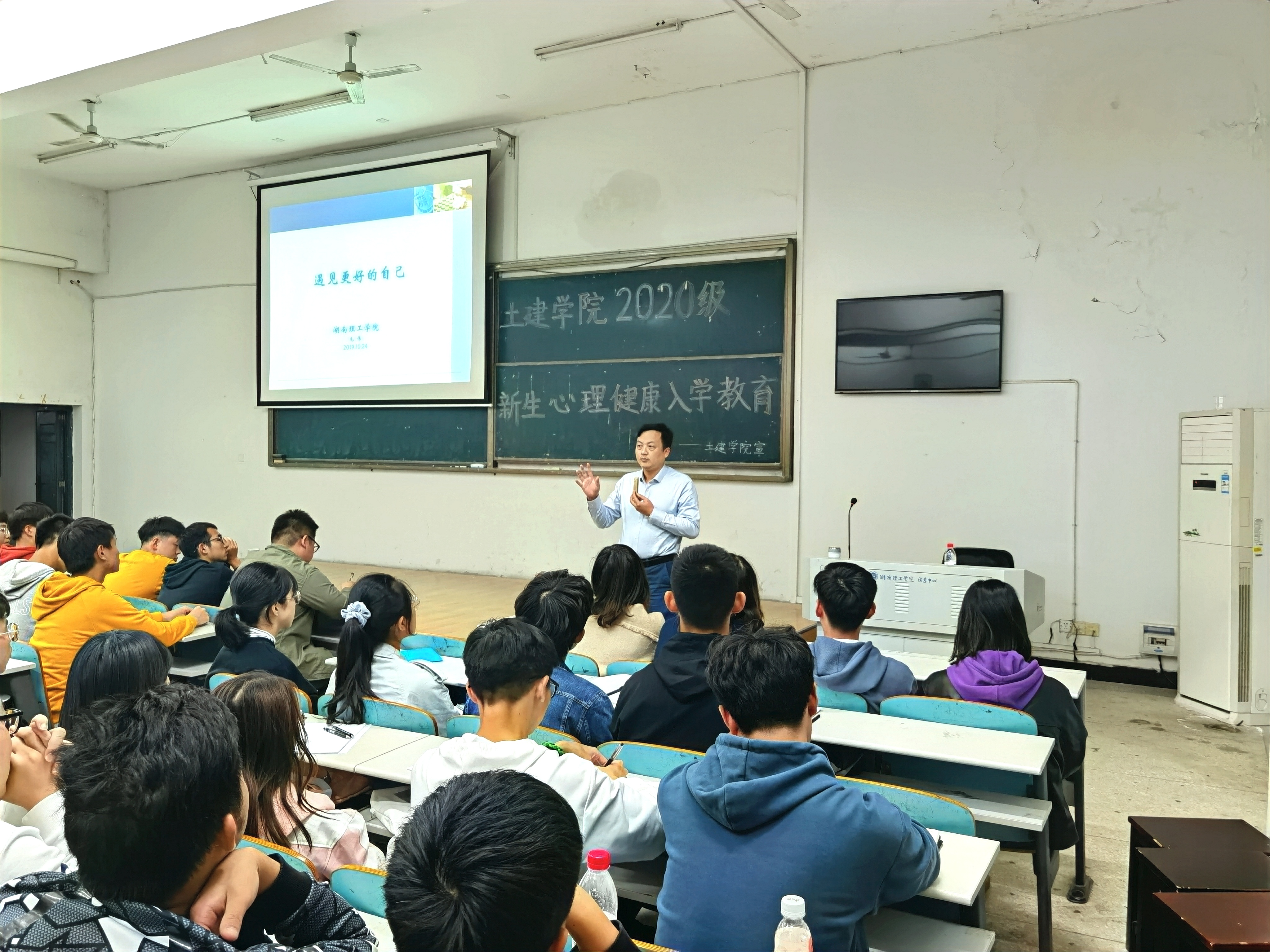 10月28日晚,beat365手机版官网入口于9T2教室开展2020级新生心理健康入学教育,学工部副部长毛伟担任主讲人,公司党委副书记钟铭金作主持人,20级全体新生聆听了本次讲座。