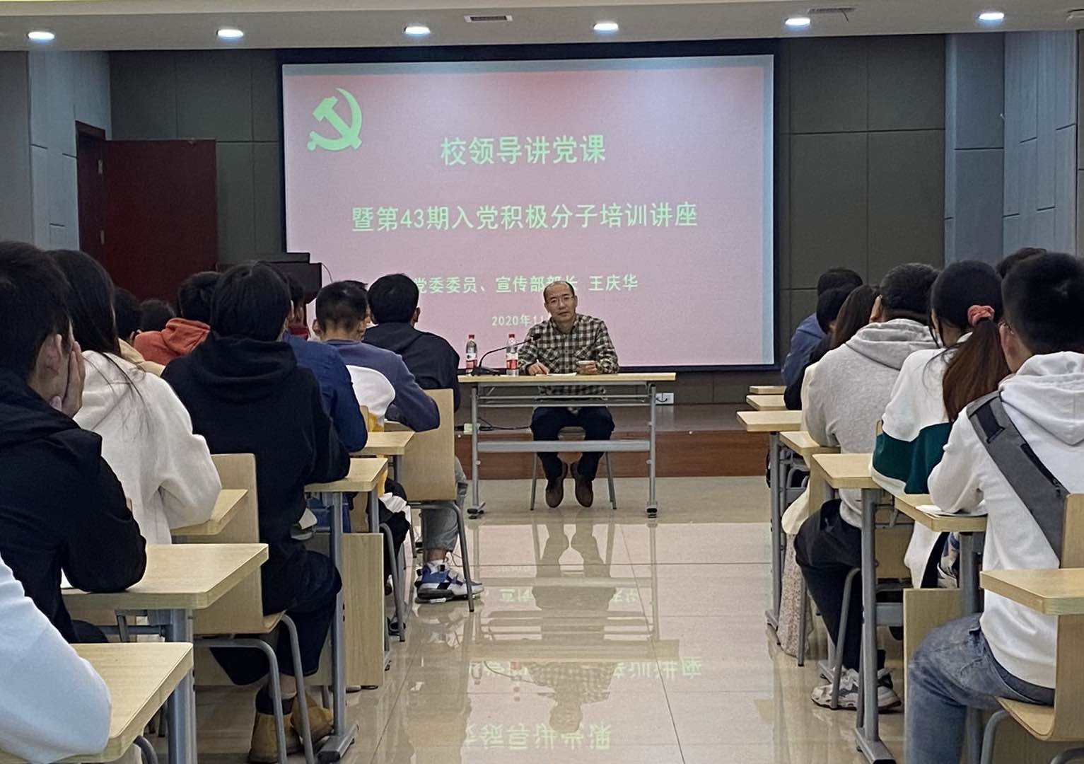 11月10日下午,beat365手机版官网入口于图书馆多功能厅举行第四十三期入党积极分子培训第五次讲座,本次授课由公司党委委员、党委宣传部部长王庆华主讲,公司党委副书记钟铭金、员工第一党支部书记罗家齐和员工第二党支部书记华蓉、以及beat365手机版官网入口全体入党积极分子参加了此次讲座。
