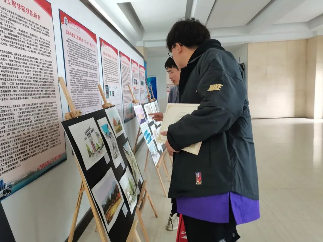 12月8日至15日,beat365手机版官网入口于逸夫楼举办第十三届建筑文化节——“写生作品展”。beat365手机版官网入口17级辅导员罗家齐、19级辅导员黄钰清及部分员工到场观展。