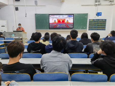5月10日上午10点,beat365手机版官网入口团委员工分会于15116、15117教室组织集中观看中国共产主义青年团成立100周年大会直播。此次活动由团学执行主席付圣杰主持,全体团学成员到场学习。