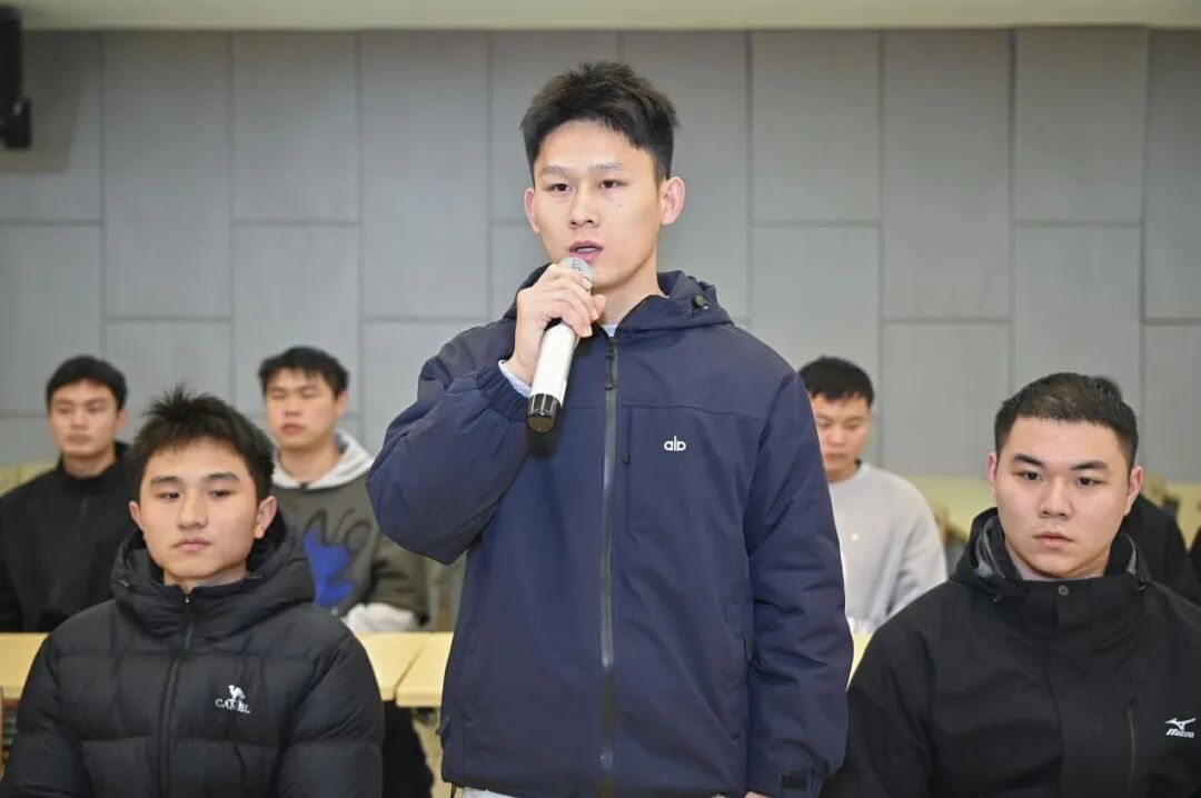 随后,退役复学在校员工代表开启经验分享。22级覃开禧结合自身经历,分享了如何将部队优良作风融入校园生活、在志愿服务中践行责任担当、在省级以上学科竞赛中攻坚克难的心路历程,每一步都彰显军人本色,为新入学的退役专升本员工树立了先锋模范标杆;