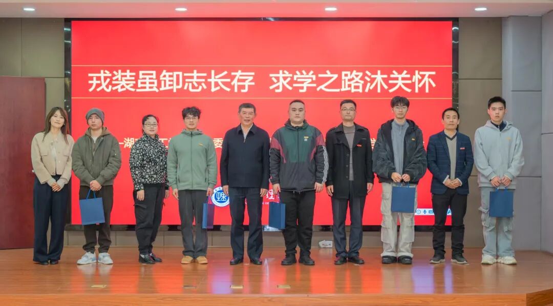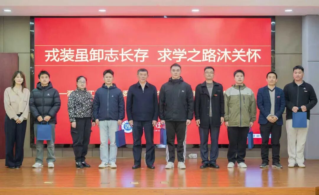 活动尾声,校院关工委领导为退役专升本新生郑重佩戴校徽、赠送定制纪念品。熠熠校徽象征着新身份的开启与初心的传承,精美纪念品承载着校院对员工逐梦前行的殷切期许。