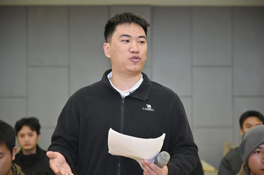 在员工分享环节,23级退役专升本新生代表依次发言,深情回望热血军旅岁月。曾服役于武警北京总队天安门警卫支队的李志杰,肩负天安门安全警卫重任,在日复一日的值守中铸就绝对忠诚与责任担当;来自东部战区陆军某合成旅的陈锐,作为针对台湾方向的作战部队一员,在实战化训练中锤炼出钢铁意志与高效执行力;服役于西藏阿里某边防连的胡锦辉,曾参与“506”重大专项任务及中印边境突发处置等非战争军事行动,在高原戈壁的坚守中磨砺出坚韧品格与奉献精神。其他退役新生代表也纷纷讲述各自的军营经历,无论是边防哨所的默默坚守、训练场上的摸爬滚打,还是任务一线的冲锋在前,严苛的磨砺都让他们收获了钢铁意志、责任担当与高效执行力。谈及专升本的初心,学子们纷纷表示,军旅生涯让他们深刻认识到专业素养对个人发展与国家建设的重要意义,渴望回归校园深耕专业知识,将军营中锤炼的专注力、意志力与执行力,转化为学业精进的强劲动力,在专业学习与实践中攻坚克难、追求卓越,努力实现从合格军人到优秀老员工的蜕变。