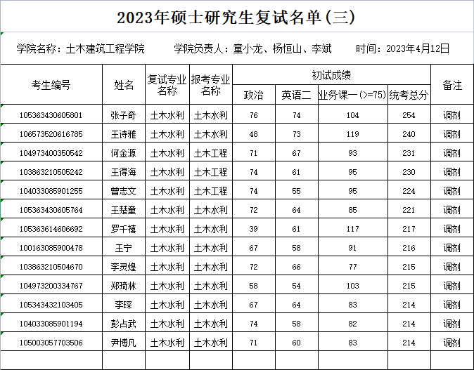 (2)初试统考科目与调入专业初试科目相同、业务课二科目为“结构力学、材料力学或土力学”的考生优先。