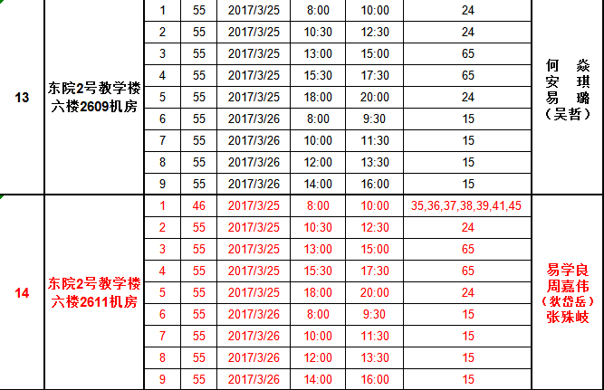 2.2017年3月全国计算机等级考试监考安排表