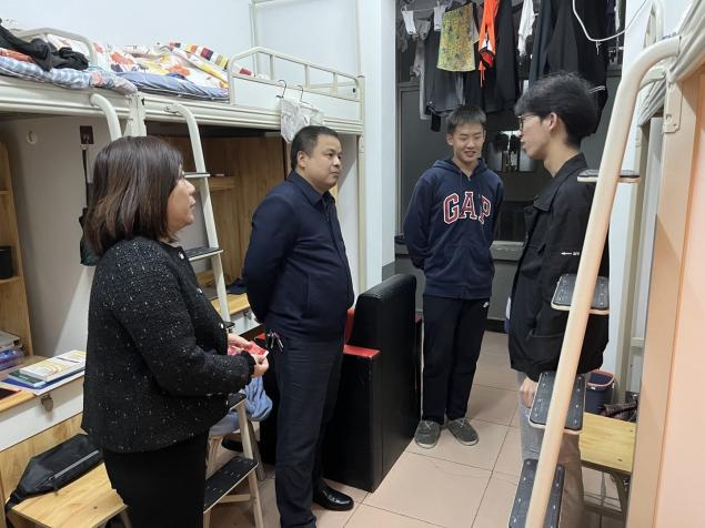 为关爱、关怀员工,进一步了解员工思想,生活及学习情况,11月22日晚9点30分,学工部部长陈绪清在​公司党委副书记钟铭金及21级辅导员华蓉陪同下走访​beat365手机版官网入口员工寝室。